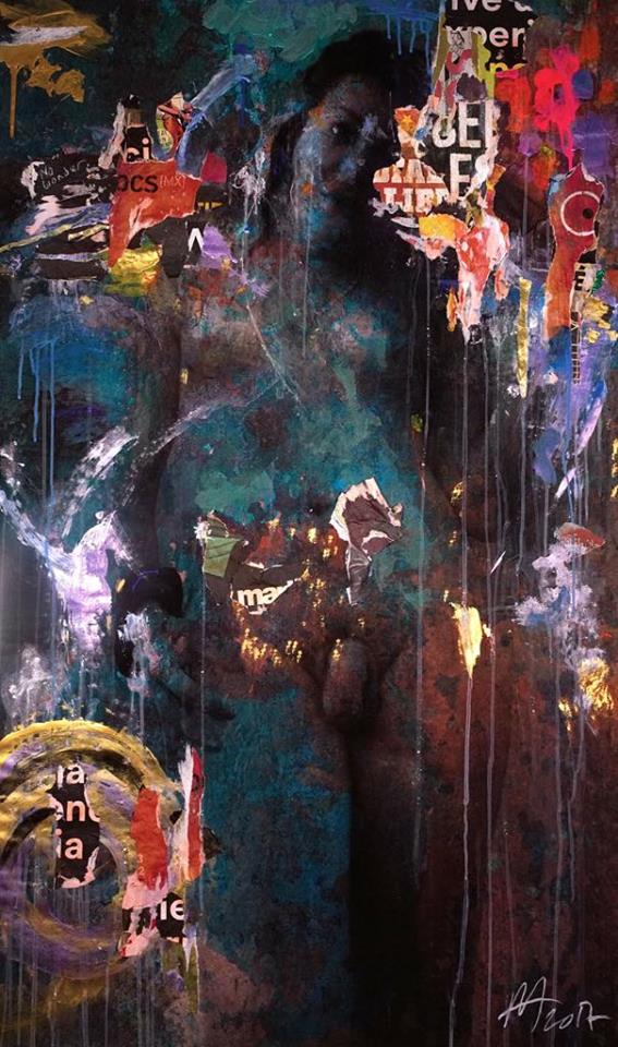 La primera pregunta que surge es cómo decide qué materiales va a utilizar en una pieza determinada. Sin despegar la mirada de su obra, comenta: “Hay muchas decisiones que tomo que no son conscientes, sino que me resultaron obvias. Cuando comencé a hacer esto, era obvio que iba a utilizar posters arrancados de las paredes de la ciudad, era obvio que iba a fotografiar las texturas en los muros y a incorporarlas digitalmente con las fotografías, era obvio que iba a utilizar pintura escurriendo. No lo pensé, fue algo obvio. Utilizo pintura muy barata, cosas que son basura, [retrato] a la gente que no tiene la más alta posición en la sociedad porque creo que el arte, además de ser un espejo, debe elevar lo banal a lo extraordinario. Esta gente es hermosa, y al juntar estos elementos y ensamblarlos se crea algo tan espectacular y bello y cool como se lo merecen”.